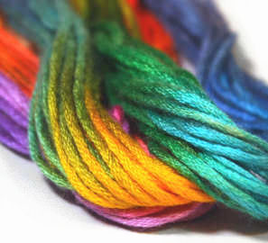 Das Seidengarn wird im Farbverlauf gefärbt.